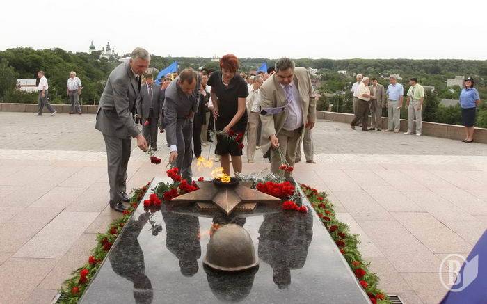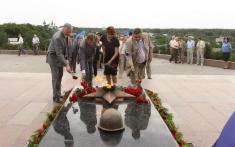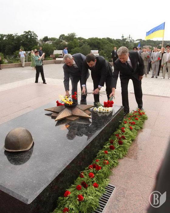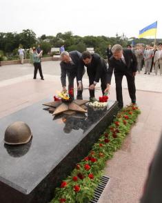 У день скорботи у Чернігові полеглих воїнів вшанували покладанням квітів у сквері ім. М.М.Попудренка та до вічного вогню на Меморіалі Слави.