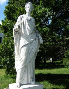 З боку паркового фасаду палацу декоративні вази прибрані для врятування від крадіжки. А одна з античних статуй (копії), що пережила першу і другу світову війни та наслідки жовтневого перевороту, в 2005 році втратила голову за допомоги чи то вандалів, чи то крадіїв.