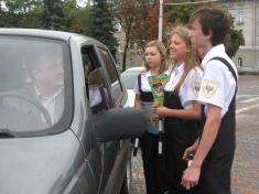 Останні разом з дорослими зупиняли автомобілі, вручали тематичні листівки та нагадували водіям про необхідність дотримання Правил дорожнього руху.