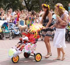 Дюймовочки, Золушка, Цветочки, Невесты, Ведьмочка, Русалка, Солнышко, Эльфы, Казаки, Пилоты, Танкисты, Снежная королева и много других симпатичных и смешных образов воплотили 23 августа участники «Парада колясок-2010» в Чернигове.