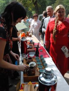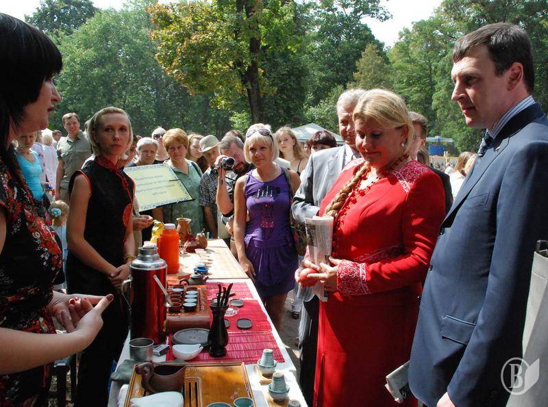 Під час свята-ярмарку квітів та плодів «Щастя краси» у Центральному парку культури та відпочинку чернігівський міський голова Олександр Соколов та голова Чернігівської обласної ради Наталія Романова взяли участь у своєрідній «чайній церемонії».