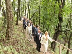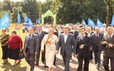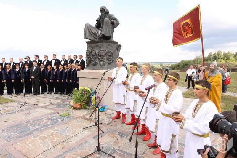 Наступні події розвивалися за таким планом. Високі гості буквально на десять хвилин завітали до Преображенського храму, поставили свічки, вклонилися чудотворній Любецькій іконі Божої Матері. Далі їх маршрут проліг на Замкову гору до пам’ятного знака на честь 1100-ліття Любецького з’їзду князів. Дорогу керівництву області дітлахи у гарних стилізованих під старовину костюмах «встелили рушниками». Принаймні, так це виглядало знизу та зверху.