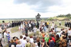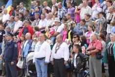 Наталія Романова та Володимир Хоменко поклали квіти до нового пам’ятника, подякували молодому скульптору за роботу та попрямували на стадіон, де в цей час розпочиналася концертна програма. Трибуни на стадіоні були повністю заповнені, а кому не вистачило місця, стояли з обох боків. Складалося враження, що тут зібралися всі жителі містечка (до речі, на сьогодні в Любечі проживає всього трохи більше 2300 людей).