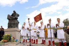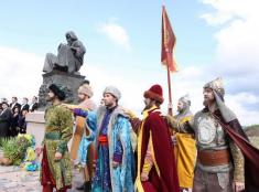 На найвищому пагорбі містечка розгорнулося театралізоване дійство за участю «давньоруських князів», а також «посланців» з різних князівств, кожен з яких приніс по горщику своєї землі. Цю землю вони підсипали під коріння дуба, що був посаджений біля пам’ятника. Це мало символізувати довічний мир, дружбу та злагоду між князівствами. В цей час з обох боків з невисоких дерев’яних «веж» лунав гучний бій барабанів. Все було дуже урочисто. Втім, не дуже зручно для численних глядачів – затісно, люди штовхали одне одного, адже їм було погано видно «картинку».
