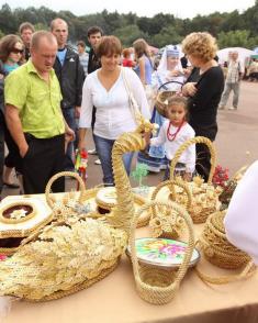 Свої вироби – домоткане полотно, оригінальні меблі з дерева, картини з соломки – представили місцеві виробники. А дівчата-майстрині з Білорусі у національному вбранні привезли на продаж різноманітні ажурні вироби з лози – дуже гарні!