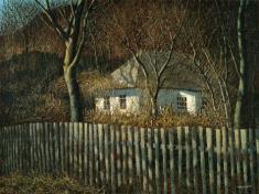 - Це все робиться не на натурі, хоча всі мотиви взяті з натури. Це робиться на стаціонарі у майстерні. Коли я про Седнів забув, то перекинувся на пейзажі придніпровських сіл. Навіть будучи в Америці, кожного року приїздив, шукав собі оселю на Дніпрі – то в одному місці, то в другому. Насамкінець знайшов собі своєрідну студію на батьківщині Шевченка, купив у Каневі стару звичайну хату, навколо там старі дерева. Хоча то не мій ідеал, адже я люблю поле, а в Каневі немає поля. І я любуюся на Дніпро, надихаюся тим. Після того, як повернувся в Україну, моє життя триває і в Києві, і в Каневі. Але пейзажам я нині приділяю найменше часу. Якби я тільки цим займався, та ще й був би продавцем, то був би багатий художник. І якби ще й портрети писав! А взагалі портретів у мене дуже мало. Мені кажуть: «Пиши портрети, і пиши потрібних людей». Але якби я на тому зупинився, то історія мистецтва дуже б збідніла.