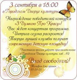 3 вересня в 18.00 у Міському Палаці культури відбудеться нагородження переможців конкурсу «З Думкою Про Красу»!