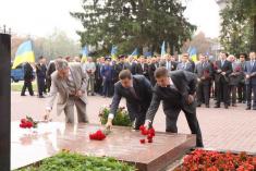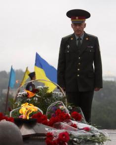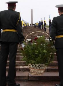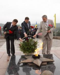 Покладання квітів здійснено згідно із розпорядженням Кабінету Міністрів України «Про заходи з відзначення 65-ї річниці закінчення Другої світової війни».
