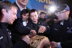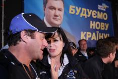 Участников автопробега Санкт-Петербург-Киев встретили под портретом Януковича