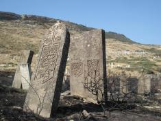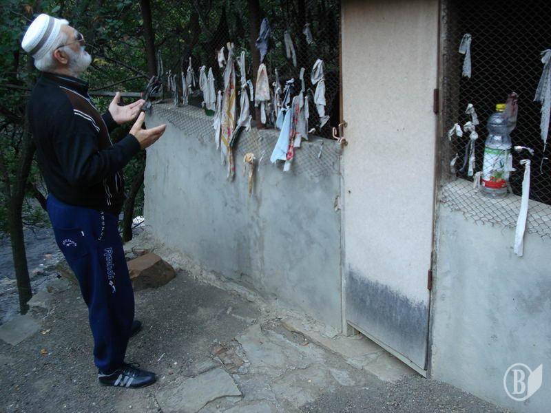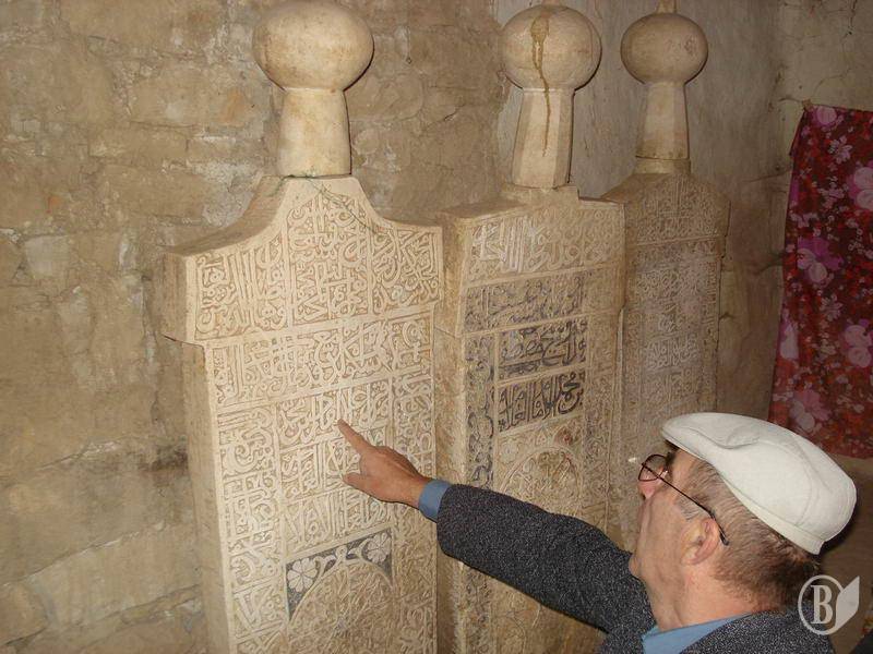 с. Согратль. Местный историк Магомед Ахдуханов переводит автору арабские надписи в зиярате Трех братьев