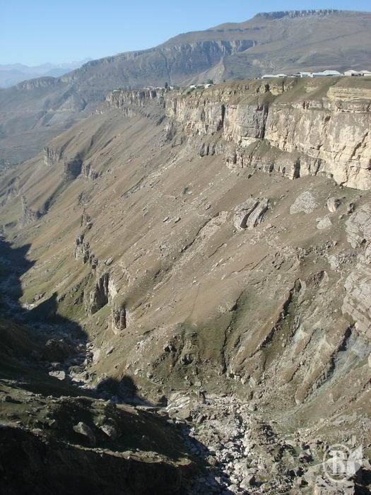 Но об одном из самых красивых мест в дагестанских горах все же расскажу. Это Цолотский канен вблизи прежней столицы Хунзахского ханства - Хунзаха. Представьте себе огромный канен глубиной в 250-300 метров и в ширину метров 300-400. Над ущельем летают орлы, а над ними, на горном плато, пасутся коровы. Здесь коровы выше орлов!