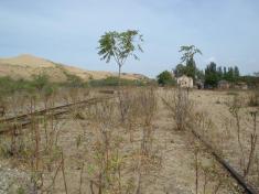 Рядом с Сари-Кумом находится оставленное людьми после разрушительного землетрясения 1970 года поселение Кум-Торкале. Несколько пустых домов из песчаника и ракушняка, ржавые рельсы недействующей железной дороги, руины железнодорожного вокзала, к которому уже 40 лет не приходят поезда. . .
