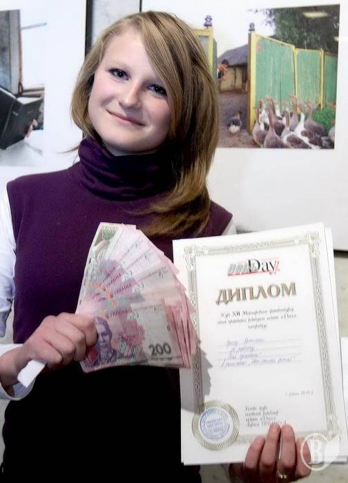 А спонсор выставки прибавил к диплому конверт с суммой... 3 тысячи гривен. Поэтому теперь Ирина может ловить прекрасные мгновения уже новым фотоаппаратом.