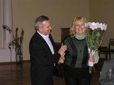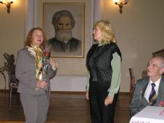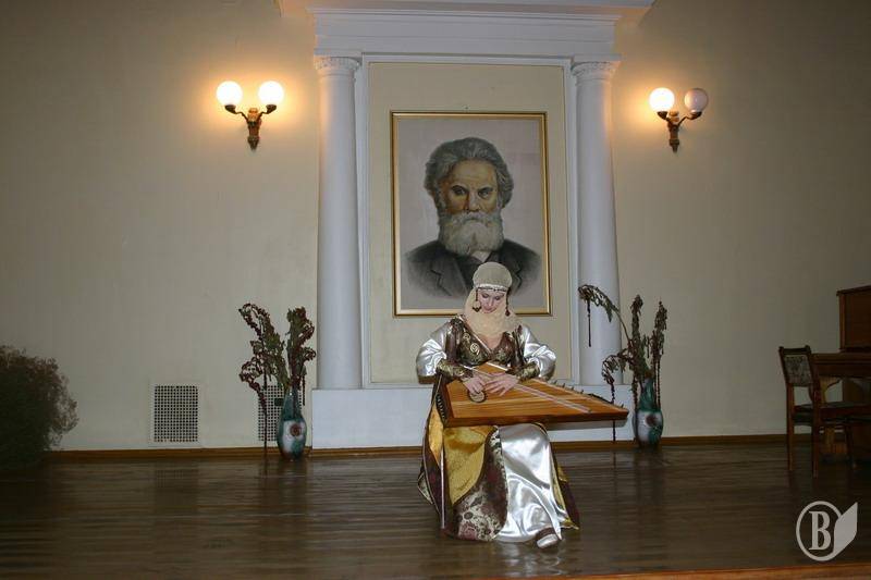 Привітанням для Людмили Олександрівни від бібліотеки разом із міською школою мистецтв став виступ Ольги Кисельової, викладача по класу гуслів, яка завітала до нас, неначе з минулого, виступивши у чудовому княжому костюмі. Артистка заграла дві композиції на інструменті, котрий вперше звучав у стінах бібліотеки – гуслях.