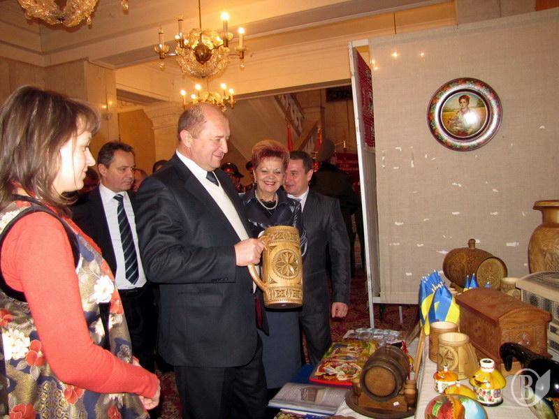 На початку святкового концерту у фойє Гомельського обласного драматичного театру працювала виставка народно-декоративного та ужиткового мистецтва та пересувна виставка «Чернігівщина-туристична», яку оглянули представники Гомельського обласного виконавчого комітету на чолі з головою Якобсоном Олександром Серафимовичем.