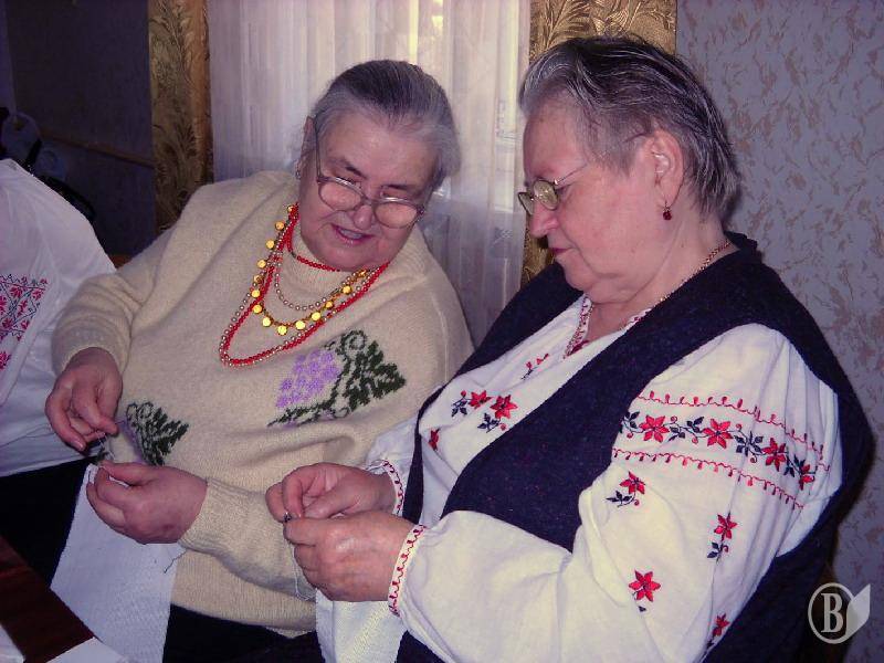 В той день, коли я завітала на чергове засідання Клубу, жінки вивчали шви, які необхідні для створення та закріплення мережки. Мережка, як відомо, здавна використовувалася в нашій країні для прикрашання блузок і сорочок, постільної білизни, скатертин, а також святкових рушників (але тільки не весільних!). Ольга Іванівна в черговий раз нагадала присутнім, що весільний рушник ніколи не прикрашали мережкою, аби «добробут молодят не був дірявим».