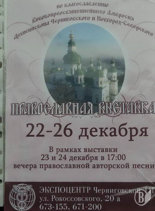 А поки що завітайте до приміщення Чернігівської регіональної торгово-промислової палати за адресою: вул. Рокосовського, 20-а. Тут до 26 грудня діє православна виставка-продаж.