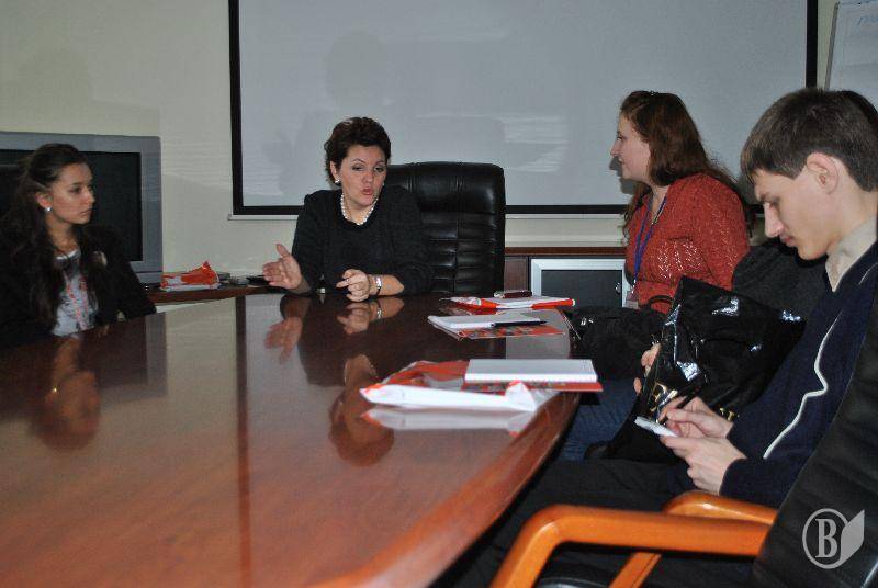 Згодом підійшла Олена Фроляк, головний редактор інформаційного відділу каналу ICTV та ведуча програми «Факти». Надзвичайно розумна і вродлива жінка, як на екрані, так і в житті. Олена розповіла нам основні правила відбору інформації. По-перше: потрібно брати ту інформацію, що буде цікава телеглядачам, а не якомусь окремому журналістові. По-друге: не повинна допускатися у загальних інформаційних блоках так звана «чорнуха» - це все окремою передачею пізно увечері, чи окремою сторінкою в друку. З кримінальних новин повинні бути лише ті, що зачіпають цінності високоморальної людини, а не ті, де наприклад, кривава міжусобиця в сім`ї алкоголіків. Також Олена поділилася з нами досвідом переходу із локальних Івано-Франківських ЗМІ на столичний телеканал ICTV. Виявляється, це було справою випадку: коли Олена проходила стажування у Великій Британії (до речі, з Івано-Франківська туди потрапила, а не зі столиці), до неї зателефонував її колишній однокурсник і запропонував взяти участь у новому проекті «Вікна». «Ось, саме так усе й було. І бачите, вже 10 років працюю на ICTV», - каже Олена. Бажаючим пробитися, радить починати з себе: правильна професійна освіта, мобільність, грамотність і самоосвіта - ось всі секрети успіху. Найцікавіше те, що попри важкий графік роботи Олена ще й по повній хазяйнує у своєму будинку: готує, прибирає та займається дітьми. З нетерпінням чекає вихідних, щоб повністю віддатися сімейним турботам.