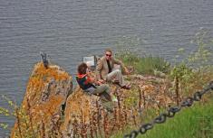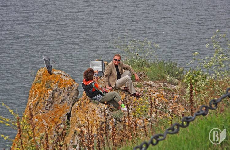 І раптом ти зустрічаєш на скелі наших туристів, які влаштувались фотографуватися на камені скелі, куди спускатися суворо заборонено. Ну, що ж, кожен по-своєму звик одержувати адреналін.