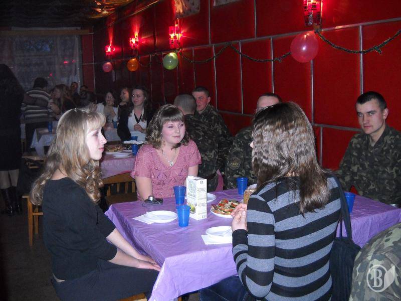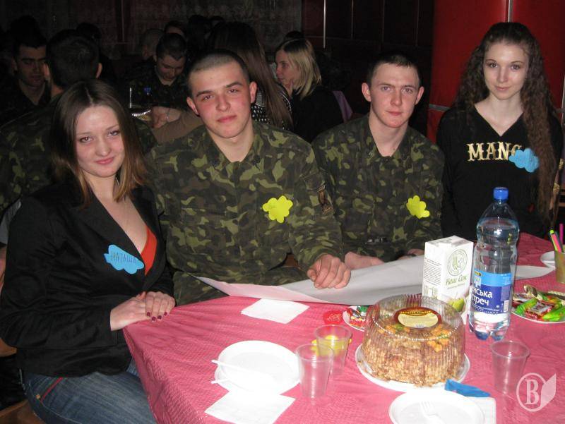 О шостій годині вечора солдати зустрічали представниць чарівної статі на контрольно-пропускному пункті військової частини. Прийшли навіть швидше, аби показати свою пунктуальність. Далі у супроводі мужнього захисника Вітчизни дівчата гордо прямували до військового «диско-клубу» - перевтіленої солдатської чайної. Студентки приготували для солдат смачні бутерброди та розставили на столах принесені з собою солодощі і соки. Розпочинали вечірку два високих юнака. Вони так вміло завели публіку, що практично кожен солдат та студентка брали участь у всіх конкурсах. Нерідко допомагала ведучим головний спеціаліст відділу соціальної роботи Чернігівського міського центру соціальної служби сім’ї, дітей та молоді Наталя Волинець.