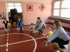 Разом зі своїми татами та матусями малята виконували різноманітні спортивні вправи й змагалися на спритність у спортивній естафеті.