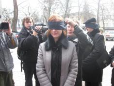 З пов’язками на очах вони подолали маршрут від Чернігівської міської ради до бібліотеки ім. В. Короленка. Журналістів у цьому експерименті представляла Анастасія Яновська.