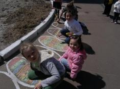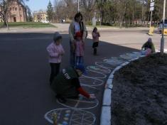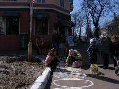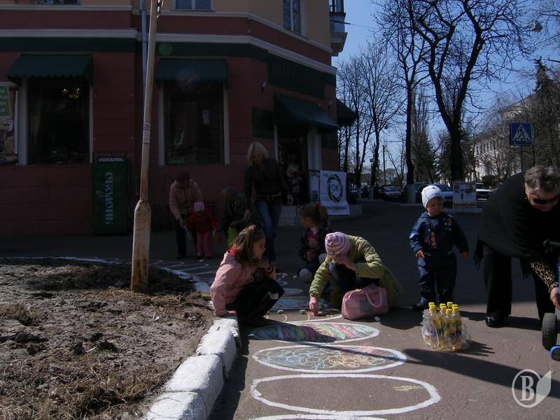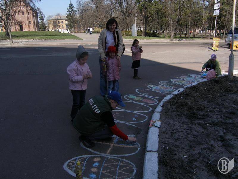 Далі гості події могли за бажанням продовжити розпис або на традиційному матеріалі, або на повітряних кульках, або ж зробити малюнок на асфальті. Останній варіант користався особливою популярністю серед наймолодших учасників, котрими був розмальований асфальт біля клумби квітів поруч із місцем проведення акції.