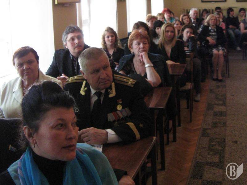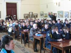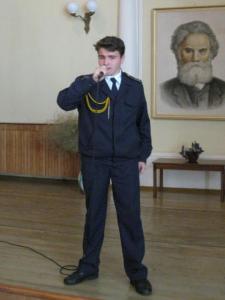 Про видатного льотчика, почесного громадянина Чернігова, генерал-лейтенанта авіації Олександра Гнатовича Молодчого школярам та військовослужбовцям гарнізону розповідали рідні героя - онук Олександр Кузнецов-Молодчий та його дружина Тетяна.