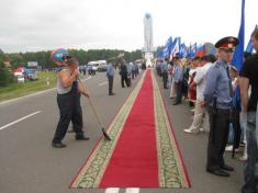 Показовим моментом цього урочистого мітингу стало те, що він проходив під прапорами російської партії ЛДПР, незмінним лідером якої є Володимир Жириновський. Самого Володмира Вольфовича на мітингу не було, а от від української сторони були, принаймні, три народні обранці від партії регіонів - Михайло Чечетов, Григорій Маньковський та Сергій Андрос.