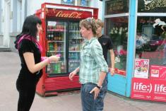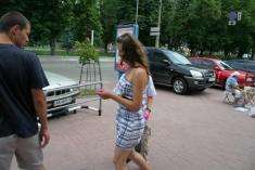 Волонтери Чернігівської молодіжної ГО <<Центр прогресивної молоді <<Апельсин>> поширювали спеціальний знак єднання - малинові браслети з написом <<Залишайся людиною>>.