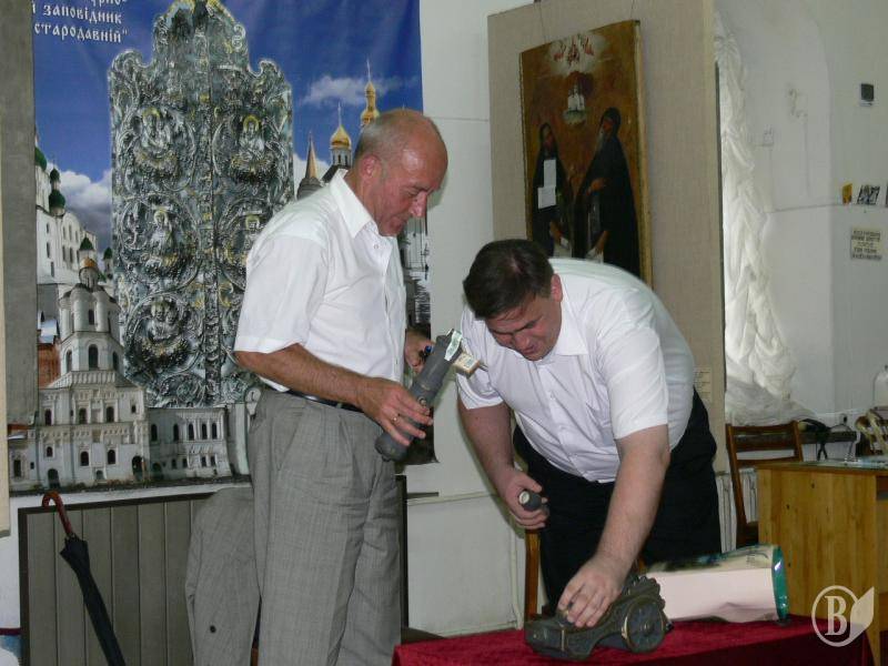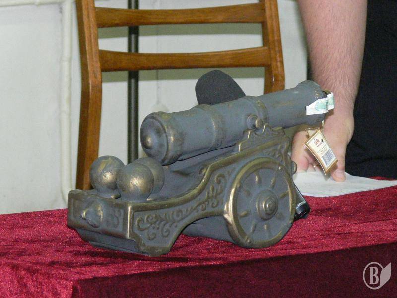 Наприкінці зустрічі колектив заповідника "Чернігова стародавнього" презентував гостю сувенірну пляшку у вигляді гармати.