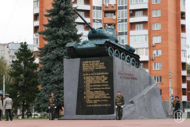 У Чернігові з нагоди Дня танкіста військовослужбовці гарнізону поклали квіти до пам'ятника воїнам-визволителям - символу Великої Перемоги - танку, який встановили на честь визволення міста від німецько-фашистських загарбників.