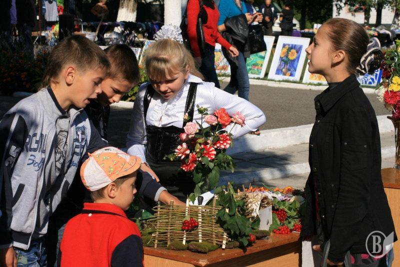 На площі перед будинком культури діти демонстрували виготовлені власноруч декоративні експозиції з нагоди свята, а також малюнки на героїко-патріотичну тематику.