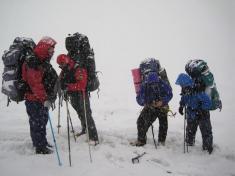 Керував експедицією настоятель храму міста Тирниауза отець Ігор, участь у ній брали шість чоловік, а до вершини дісталися троє: отець Ігор, Олександр Волощук і москвич Віктор Арчвадзе.