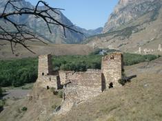 Наступного ранку, прокинувшись ще до сходу сонця (хотілося сфотографувати освітлені червоно-помаранчевим кольором гори), я вирішив дослідити баштовий комплекс Верхній Оздик. Перестрибнувши струмок, по ледь помітній стежці піднявся до бойових і житлових башт та склепів. Коли тут жили люди, це фактично був аул-фортеця. Інгушські бойові башти є, за великим рахунком, вершиною архітектурної і будівельної майстерності стародавнього населення краю. Вони вражають простотою форми, монументальністю і суворою витонченістю. Особливої величі їм надає пірамідально-ступінчатий дах. Заввишки бойові башти мають 27-29 метрів, а співвідношення висоти до основи – 10:1. Як правило, вони п’ятиповерхові, хоча трапляються й у чотири або шість поверхів. Перший поверх зазвичай слугував темницею для полонених, там же зберігалося зерно в спеціальному кутовому кам’яному "мішку". На другому поверсі знаходилися захисники і стража під час облоги, оскільки вхід у бойову башту був лише тут. Третій поверх займали сім’ї захисників, всі верхні поверхи – воїни і вартові. Своєрідною особливістю багатьох інгушських (а також і чеченських і грузинських) бойових башт є "машикулі" - маленькі захисні балкончики на верхньому поверсі, які разом з бійницями служили цілям ефективної оборони. Ще одна особливість – наскрізні великі хрести, які робилися майже на всіх боках верхньої частини башт (так звані "хрести Голгофи"). Дослідники пов’язують їх із впливом сусідньої православної Грузії (достеменно відомо, що іслам в Інгушетії остаточно утвердився лише в середині ХІХ століття).