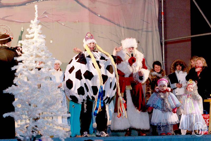 Перед відкриттям головної ялинки міста Діди Морози і їх супутниці снігуроньки пройшлися парадом.