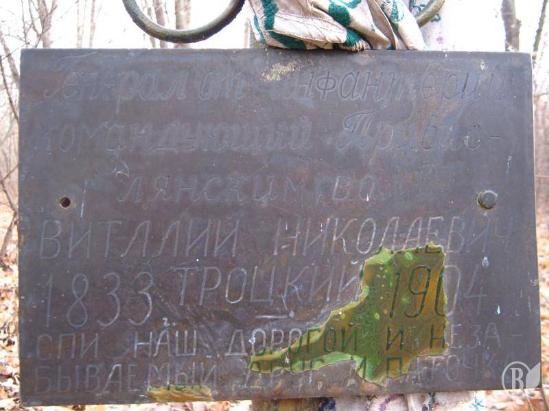 Троцький Віталій Миколайович – “один из выдающихся боевых генералов русской армии”, генерал-ад'ютант, генерал від інфантерії, командуючий військами Віленського військового округу, Віленський, Ковенський і Гродненський генерал-губернатор, кавалер орденів св.О.Невського і св.Георгія 3-го ступеня, мав золоту зброю “за хоробрість” з алмазами, “...умный, спокойный, доброжелательный и полезный государственный деятель”. Помер 9 травня 1901 р. у м.Вільно (нині, столиця Литви – м.Вільнюс). Тіло було перевезено залізницею 11 травня 1901 р. до Чернігівської губернії, у маєток покійного.