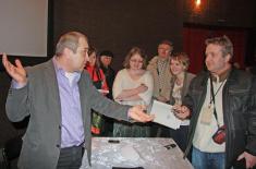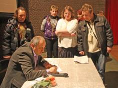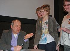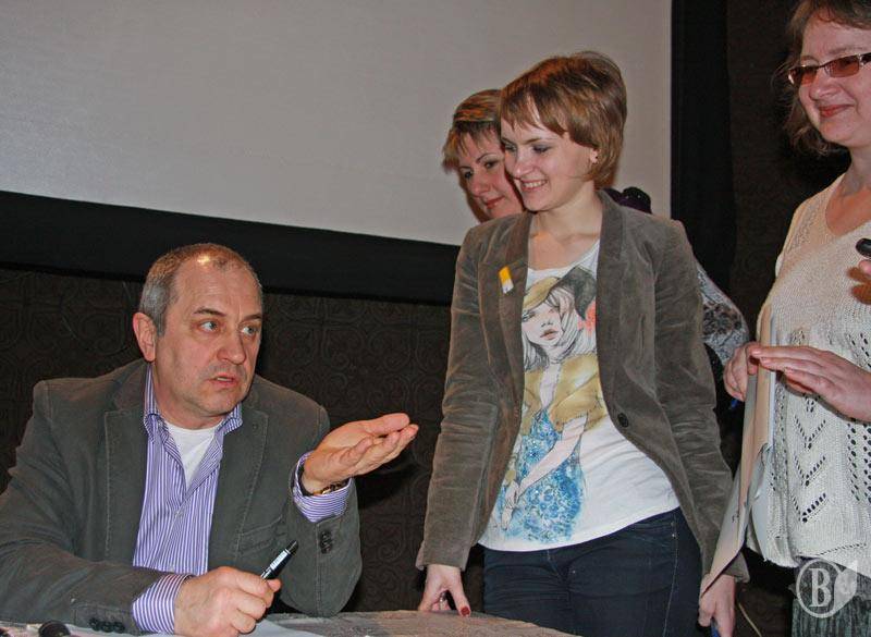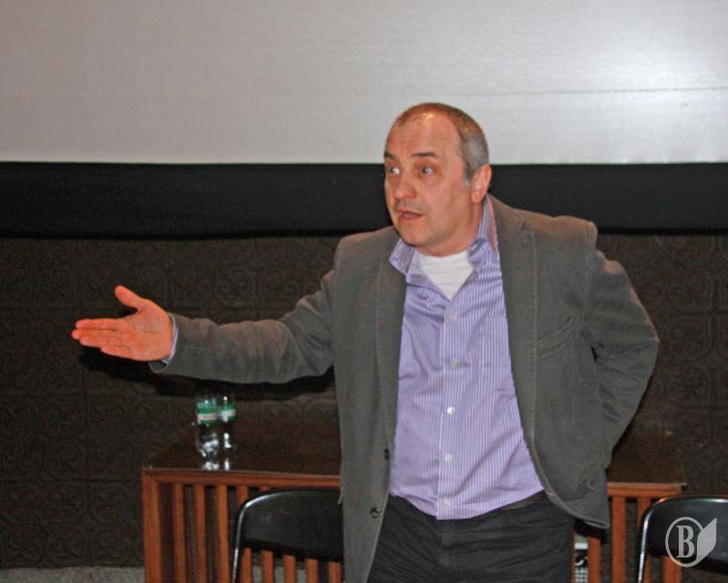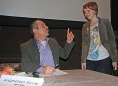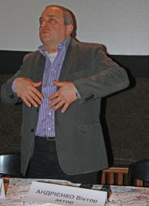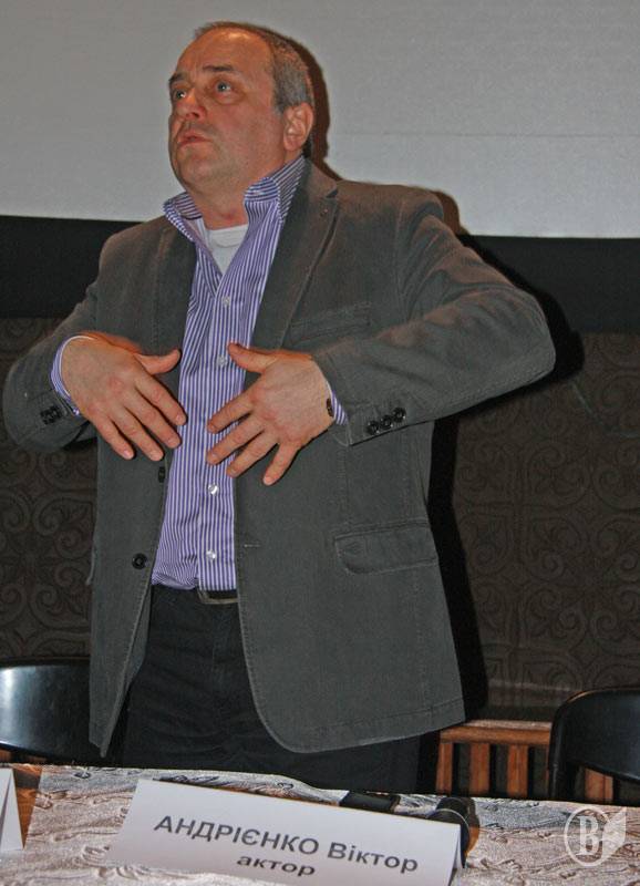 Андрієнко – подивіться нижче на фото - після перегляду фільму «ТойХтоПройшовКрізьВогонь» розповідав про роботу над фільмом , бо ми не бажали іти по редакціях: хотіли розібратися, як в Україні зробили кіно на такому високому рівні?
