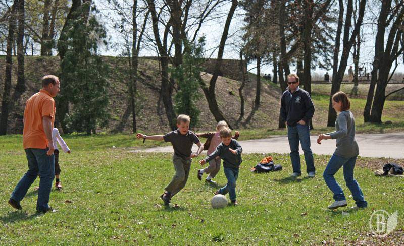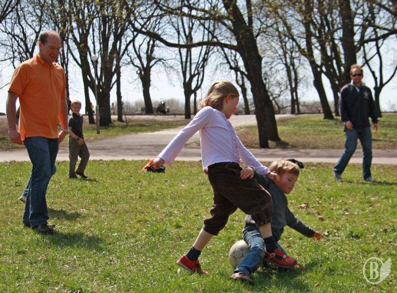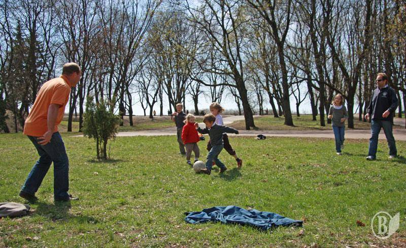 А на фото, що внизу, дві французькі сім’ї грають у нас в Чернігові на древньому Валу у футбол. Думаю, з таким же завзяттям вони б ганяли на моріжку біля Ейфелевої башти. Якщо б їх, звичайно, не зупинив поліцейський.