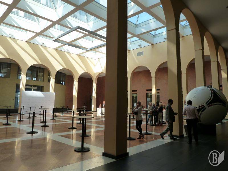 Одночасно зі спортивною діяльністю на НСК «Олімпійський» розвивається і ділова активність. Для проведення бізнес-зустрічей передбачено 39 корпоративних лож (скай-боксів) різної площі і місткості. Серед додаткових послуг: харчування, послуги хостес, консьєрж послуги, паркування, конференц-сервіс. У штаті комплексу працюють більш ніж 140 осіб, на вимогу діє також кейтерингова служба, яка може забезпечити обслуговування будь-якого банкету. Під час екскурсії ми дізналися, що конференц-приміщення розташовані на 0 рівні, тут же знаходиться Олімпійський дворик, загальна площа якого – 903 кв. м, а висота – 10 м, він виконаний в італійському стилі, і після реконструкції виглядає розкішно.