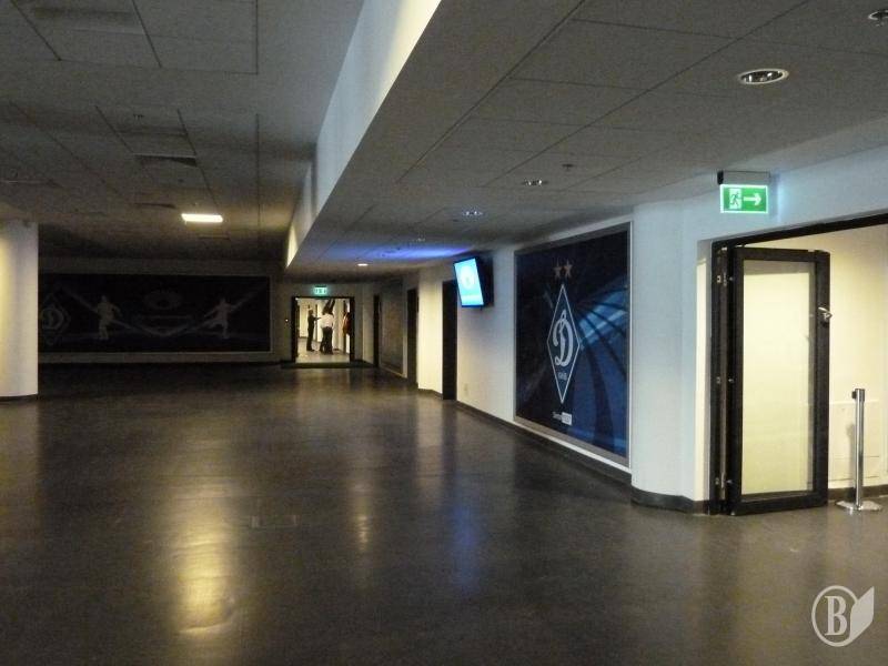 Екскурсовод Ірина провела журналістів на -1 поверх, який знаходиться під трибунами. Це зона гравців, де протікає футбольне життя країни. Тут знаходяться всі приміщення, які задіяні для підготовки та проведення гри: кімнати тренерів, роздягальні гравців, кімнати допінг-контролю, а також простора зала, яка використовується для флєш-інтерв’ю. У футболістів є всього-на-всього один офіційний вхід/вихід на поле, через який по закінченню матчу вони йдуть до кімнати відпочинку. Саме тут журналісти можуть на ходу отримати якісь коментарі у тренерів і гравців.