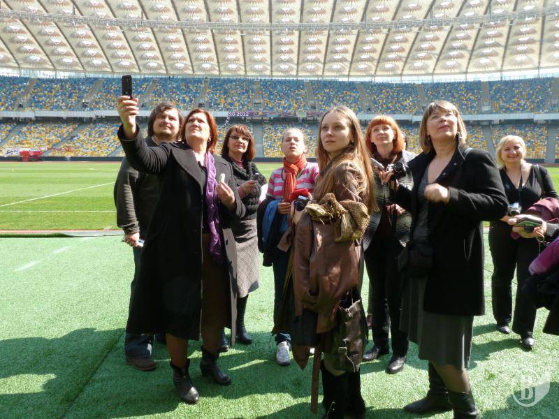 Трибуни, що вміщують 50-70 тисяч вболівальників, футбольне поле з натуральним газоном вагою 640 т (його два роки спеціально вирощували у Словаччині), два найбільші в Україні світлодіодні електронні табло площею більш ніж 100 кв. м (розміром з трикімнатну квартиру) та вагою 9,5 т – це побачили регіональні журналісти під час екскурсії до НСК «Олімпійський», яку нещодавно подарувала нам компанія «Київстар».