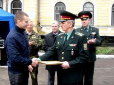 Заступник начальника Територіального управління “Північ” з виховної роботи полковник Станіслав Гончар вручив солдату, який відслужив встановлений строк, грамоту за відмінні показники в службі від командувача Сухопутних військ Збройних Сил України.