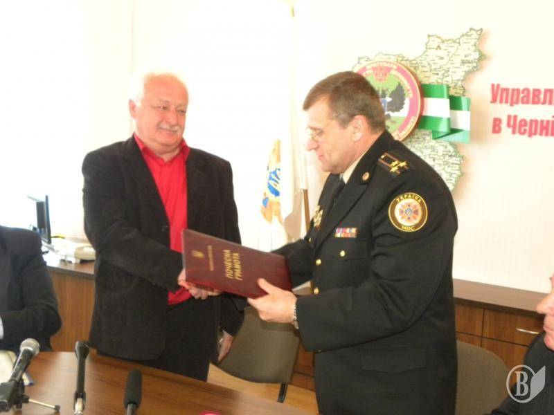 На завершення зустрічі, перший заступник начальника Територіального управління МНС у Чернігівській області полковник служби цивільного захисту Юрій Федоров за мужність та героїзм, виявлені під час ліквідації аварії на Чорнобильської АЕС та з нагоди річниці катастрофи, від імені голови Чернігівської обласної ради вручив Юрію Білику пам’ятний знак та почесну грамоту.