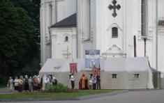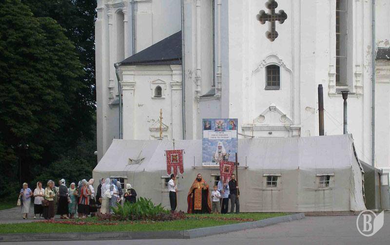 Прихожани пройшли від Спасо-Преображенського собору до так званого «походного храма». Тричі обійшли церкву Святої Великомучениці Катерини, подивились на «недопалки» попередніх наметів.