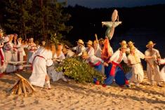 Основним стрижнем свята, як і годиться, став купальський вогонь, довкола якого і відбувалися усі дійства. Були тут і головні персонажі свята – Купала та Марена, і стрибки через вогнища, і дівочі співи, і віночки на тихій гладі Голубого озера.