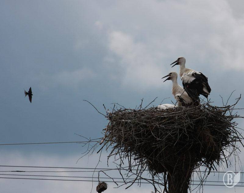 Історія цієї сім’ї лелек - на фото - досить цікава. Вона живе за 25 кілометрів від Чернігова і має традиції, які роздратували уже не одну жінку.
