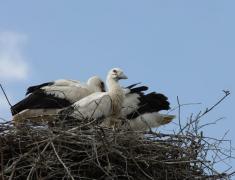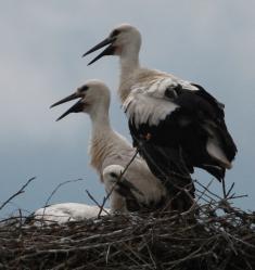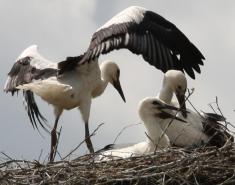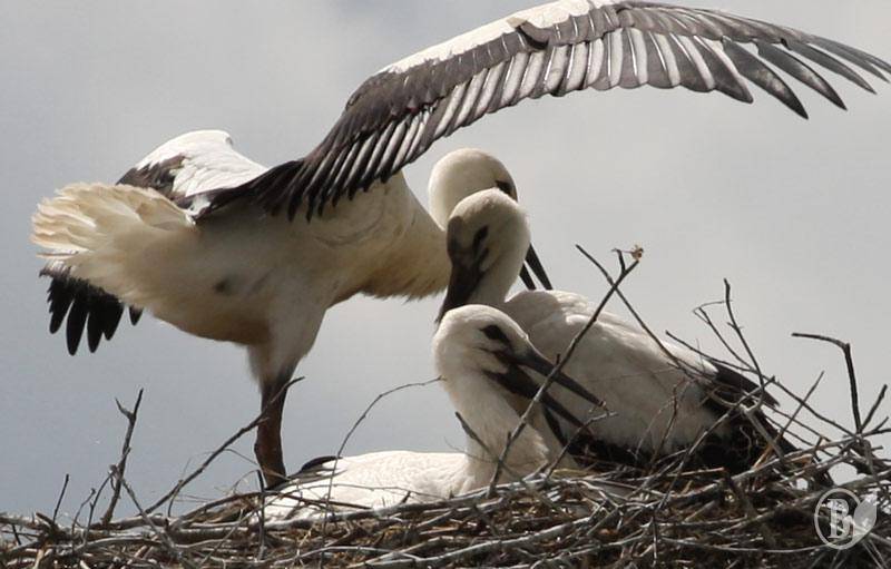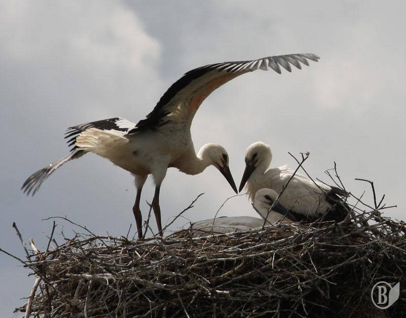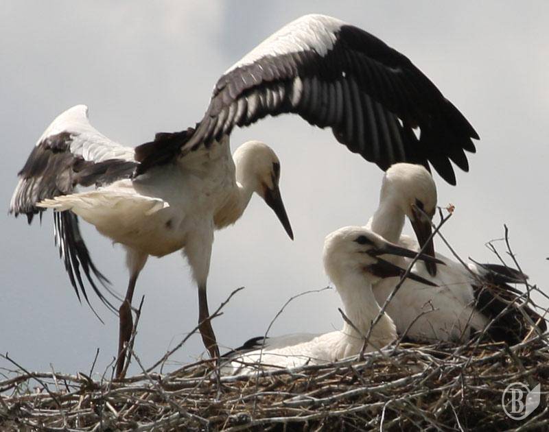 Одразу після перемоги нової самки, лелека залетів до гнізда і заходився утворювати сім’ю. Топтати.