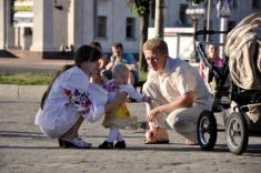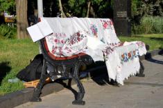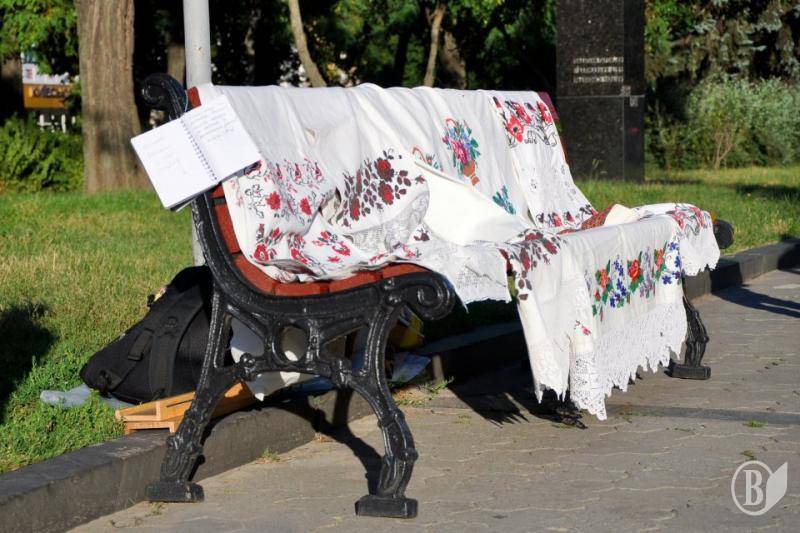 Тут на алеї героїв розгорнулася виставка сім’ї чернігівських вишивальниць Марії Міх, Ольги та Христини Шостак.