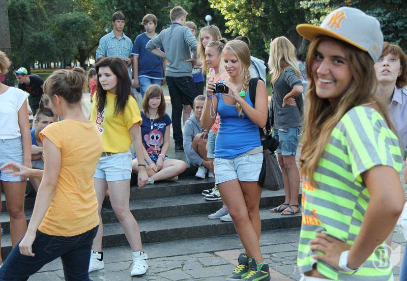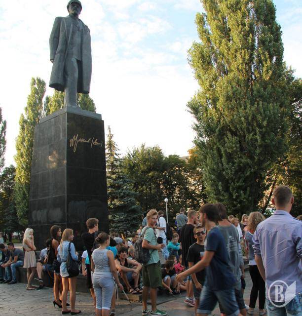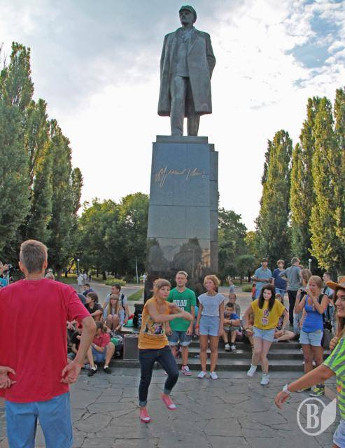 У той час, коли старші чернігівці, тусувалися на „Зеленій сцені” за 500 метрів вгорі проспекту миру, за площею, молодь зігрівалася активним танцем біля пам’ятника вождю світового пролетаріату.